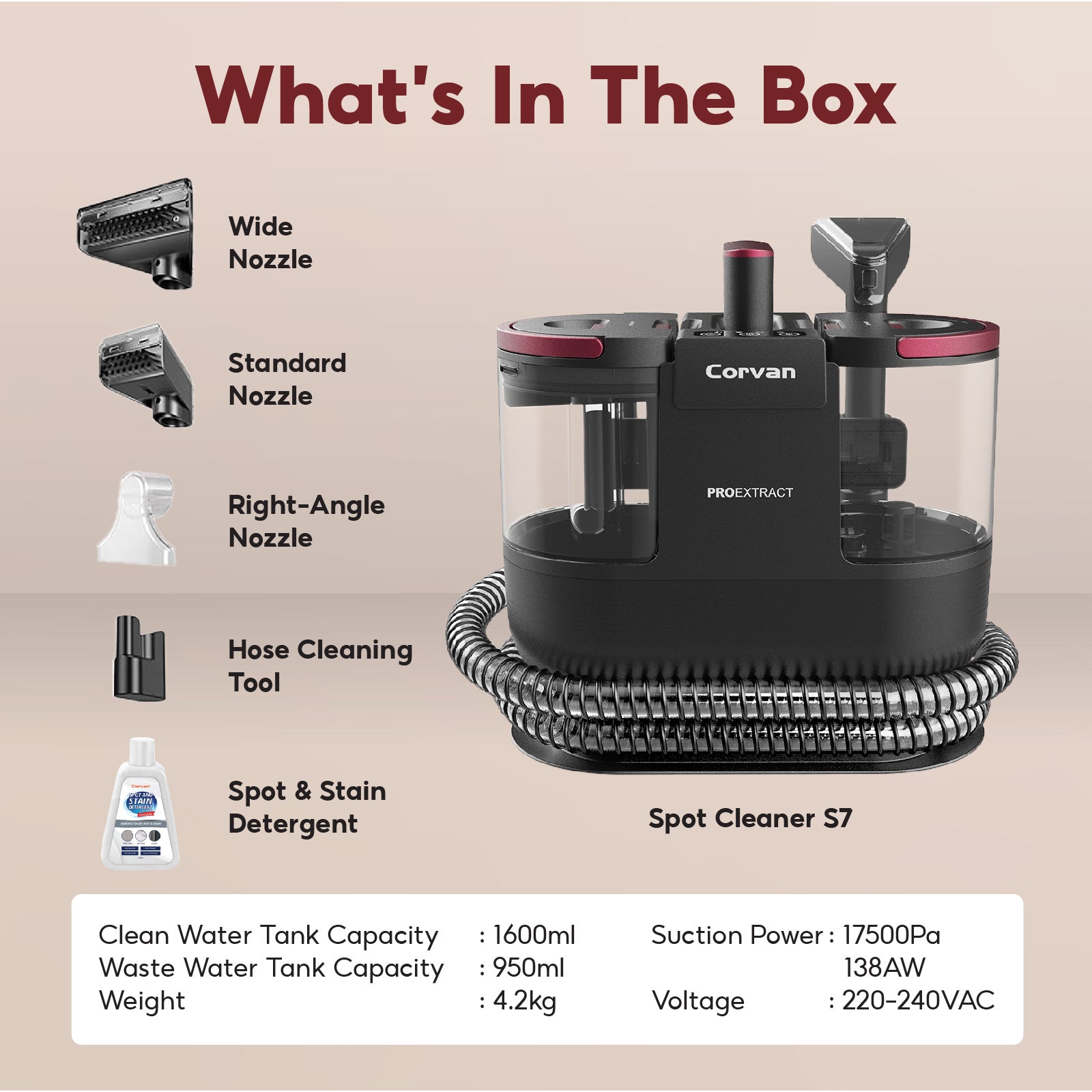 Corvan Spot Cleaner S7 - Carpet & Upholstery Cleaning with ProExtract System